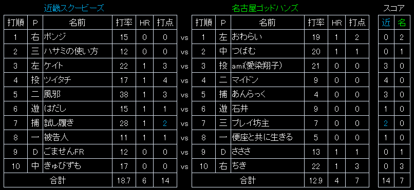 | 22 | 5 | - | 頻繁にうんこを漏らしてしまうので今現在の種田のがに股打法ではばれてしまいます。 今年はなんとしても、足を開かない打法を修得したいです。 |