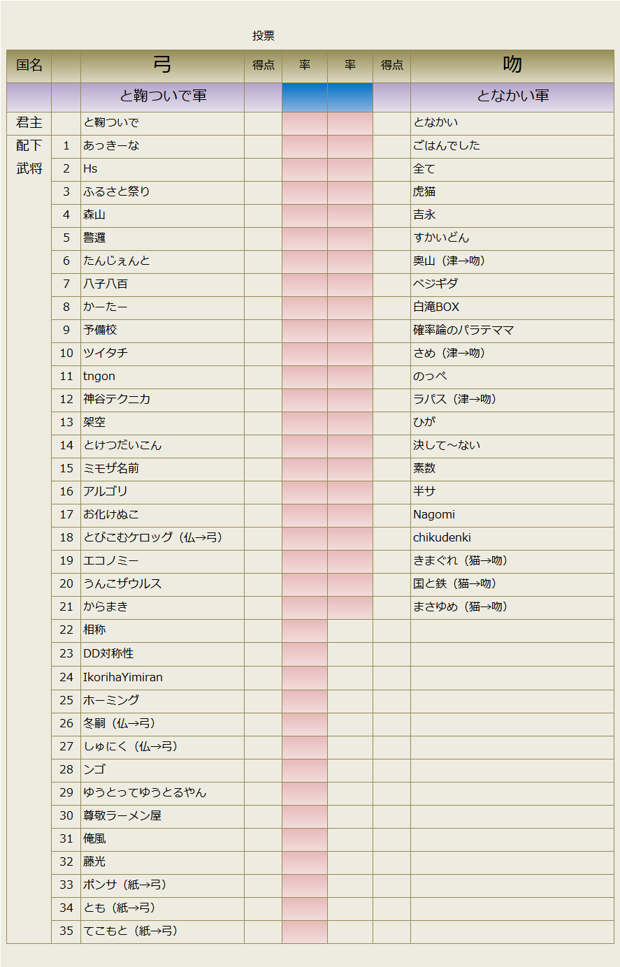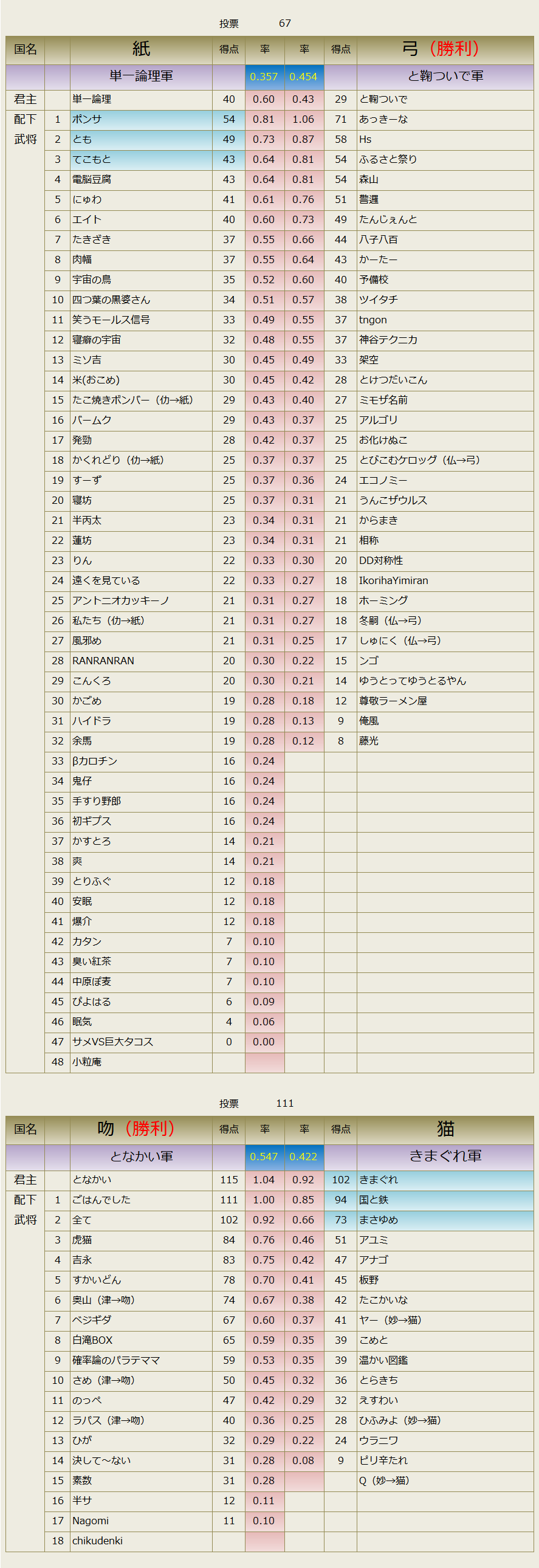 ※青色になっている上位3名は、軍を移り決勝戦に投稿して頂きます。