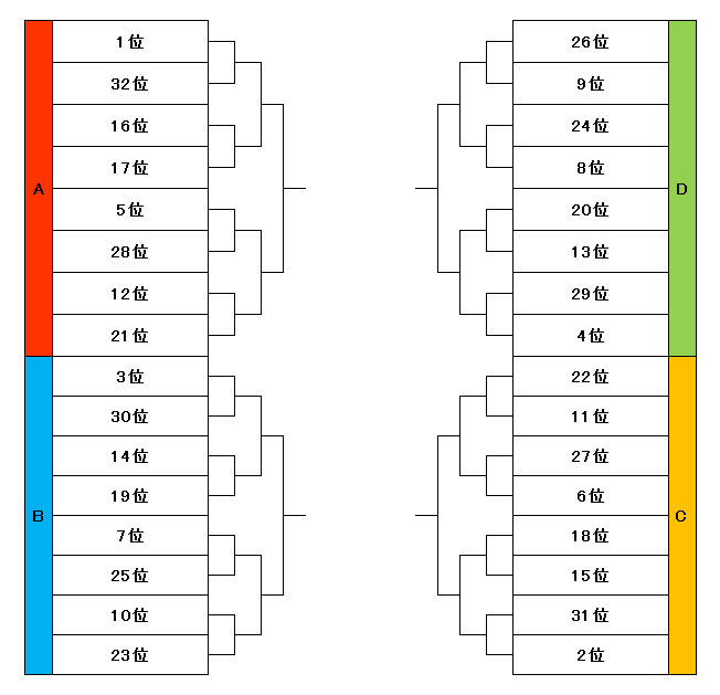 Noに色が付いてる数が、各サイトにおいて本選へ進出できる人数となります。