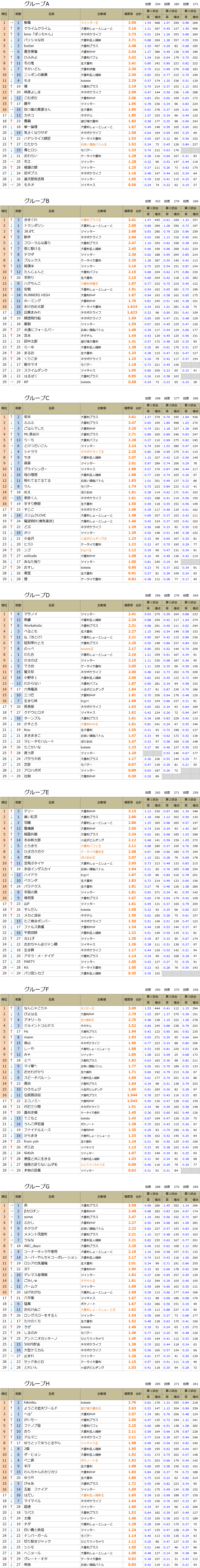 | 21 | ↑ | 24 | 吉永 | ネタチル | 1.44 | 0.43 | 129 | 0.45 | 125 | 0.56 | 151 | |||